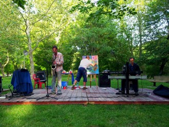 «SOLARIS JAZZ TRASH en LA HORMIGA» y «LA VIDA». Fotografías realizadas por Ibon López Lameiro. Concierto realizado el 3 de junio de 2012, en Los LLanos (Estella-Lizarra). Acuarelas, spray, ceras y acrílicos sobre lienzo. 100 X 80 cms.
