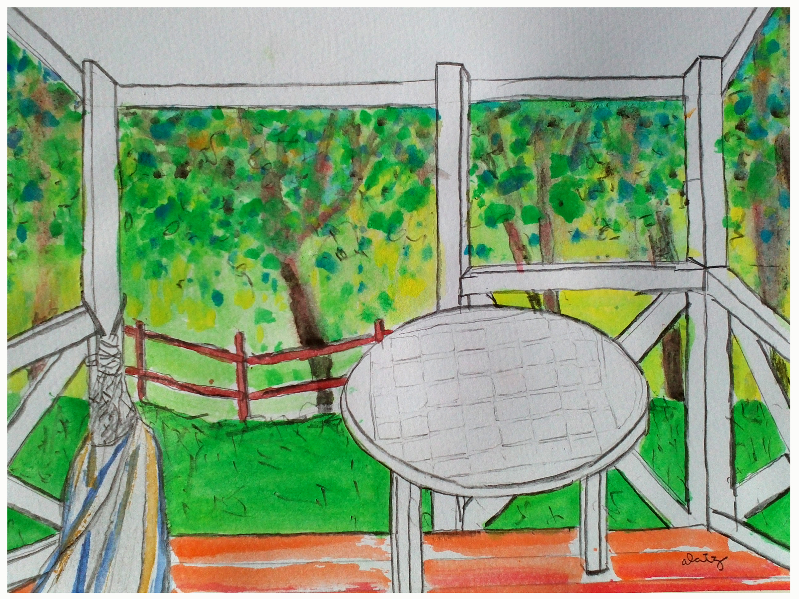 Dibujo realizado en el porche que ocupamos durante tres días en el Camping Portuondo de Mundaka.