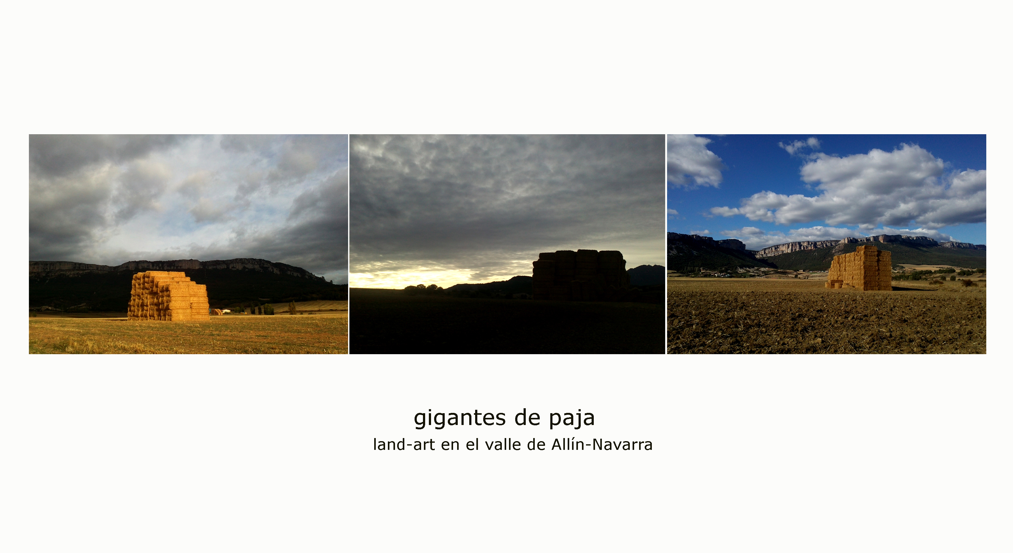 GIGANTES DE PAJA. postal que muestra varios ejemplos de land-art en el valle de Allín-Navarra.