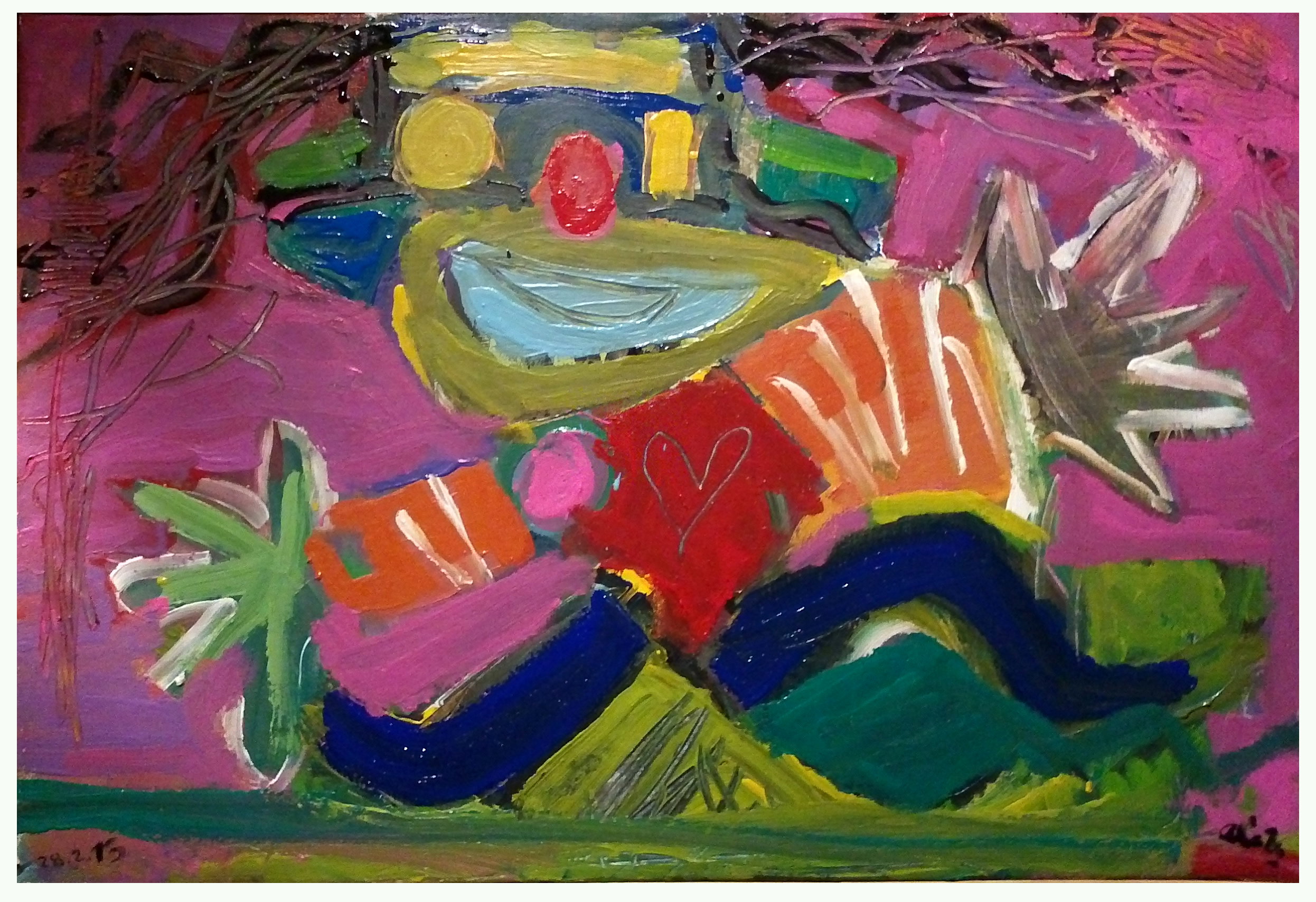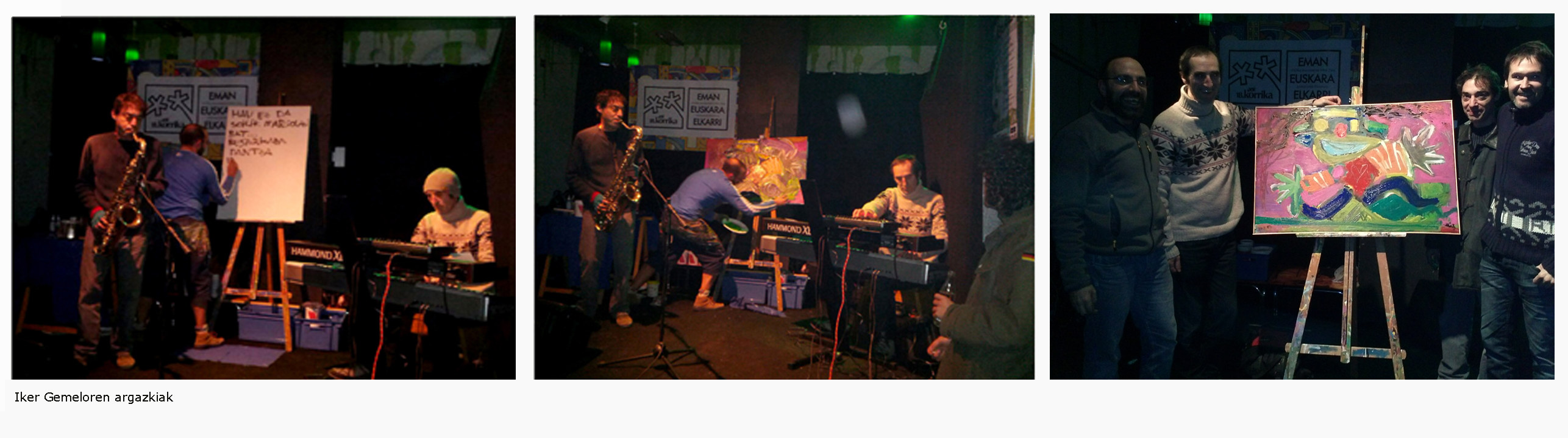 «ABRE EL CORAZÓN AL MUNDO» . acrílicos sobre lienzo. 100 x 70 cms. cuadro realizado en concierto de SOLARIS JAZZ TRASH en la Taberna GORA de Gasteiz dentro de la KORRIKA cultural.