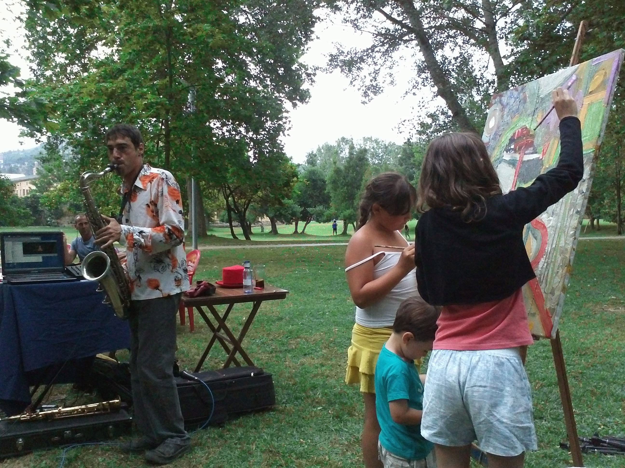 «EUSKADI TROPIKALA». acrílicos sobre lino. realizado junto con Yulema, Jordi y Marta en concierto de SOLARIS JAZZ TRASH, La Hormiga-Lizarra, 14 de julio de 2013.