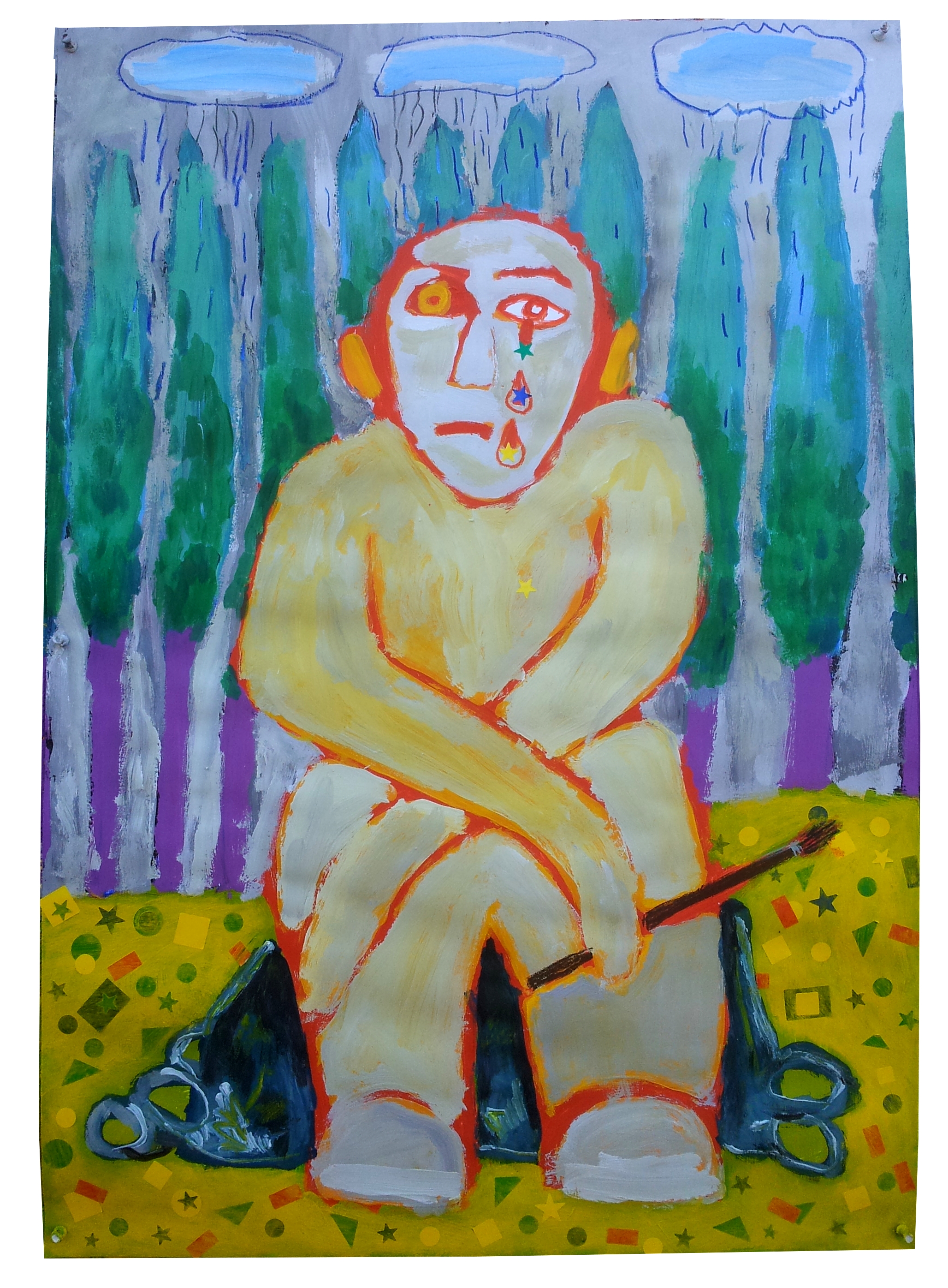 «QUE LA SONRISA NO SIRVA PARA TAPAR LA TRISTEZA». ceras, acrílicos y tristeza sobre papel. 100 x 70 cms. 28-11-2013