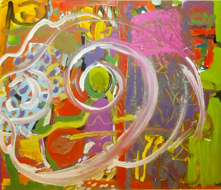 «EN SU SALSA – SALTSAN». acrílicos sobre lienzo. 114 X 93 cms. cuadro realizado en concierto de SOLARIS JAZZ TRASH en KURKUDI TABERNA LIBRE!!!, Leioa (Bizkaia) el 6-06-2014.