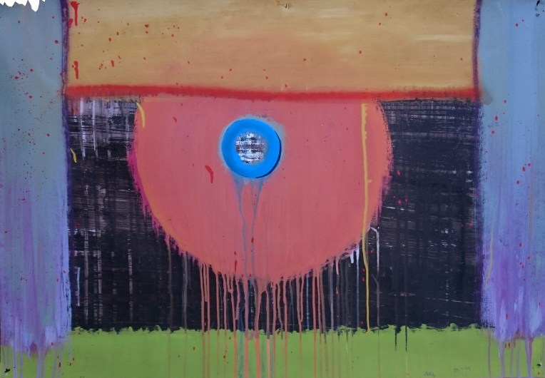 «MIEDO A LO DESCONOCIDO». acrílicos y spray sobre papel. 100 X 70 cms.