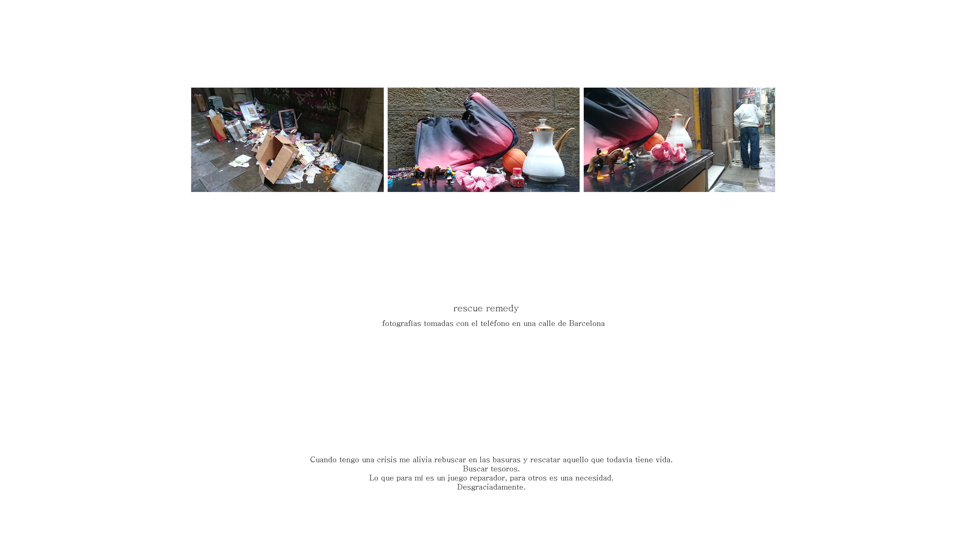 10/04/201525/04/2015 | elartecomoherramienta «RESCUE REMEDY». fotografías tomadas con el teléfono en una calle de Barcelona. Comparte esto: Compartir en X (Se abre en una ventana nueva) X Comparte en Facebook (Se abre en una ventana nueva) Facebook Me gusta Cargando...