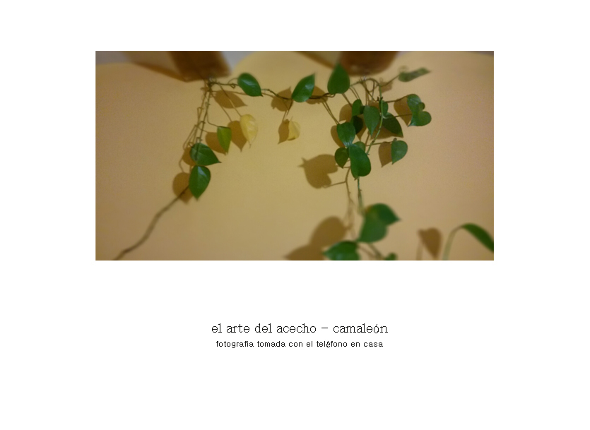 15/04/201525/04/2015 | elartecomoherramienta «EL ARTE DEL ACECHO – CAMALEÓN». fotografía tomada con el teléfono en casa. Comparte esto: Haz clic para compartir en X (Se abre en una ventana nueva) X Haz clic para compartir en Facebook (Se abre en una ventana nueva) Facebook Me gusta Cargando...