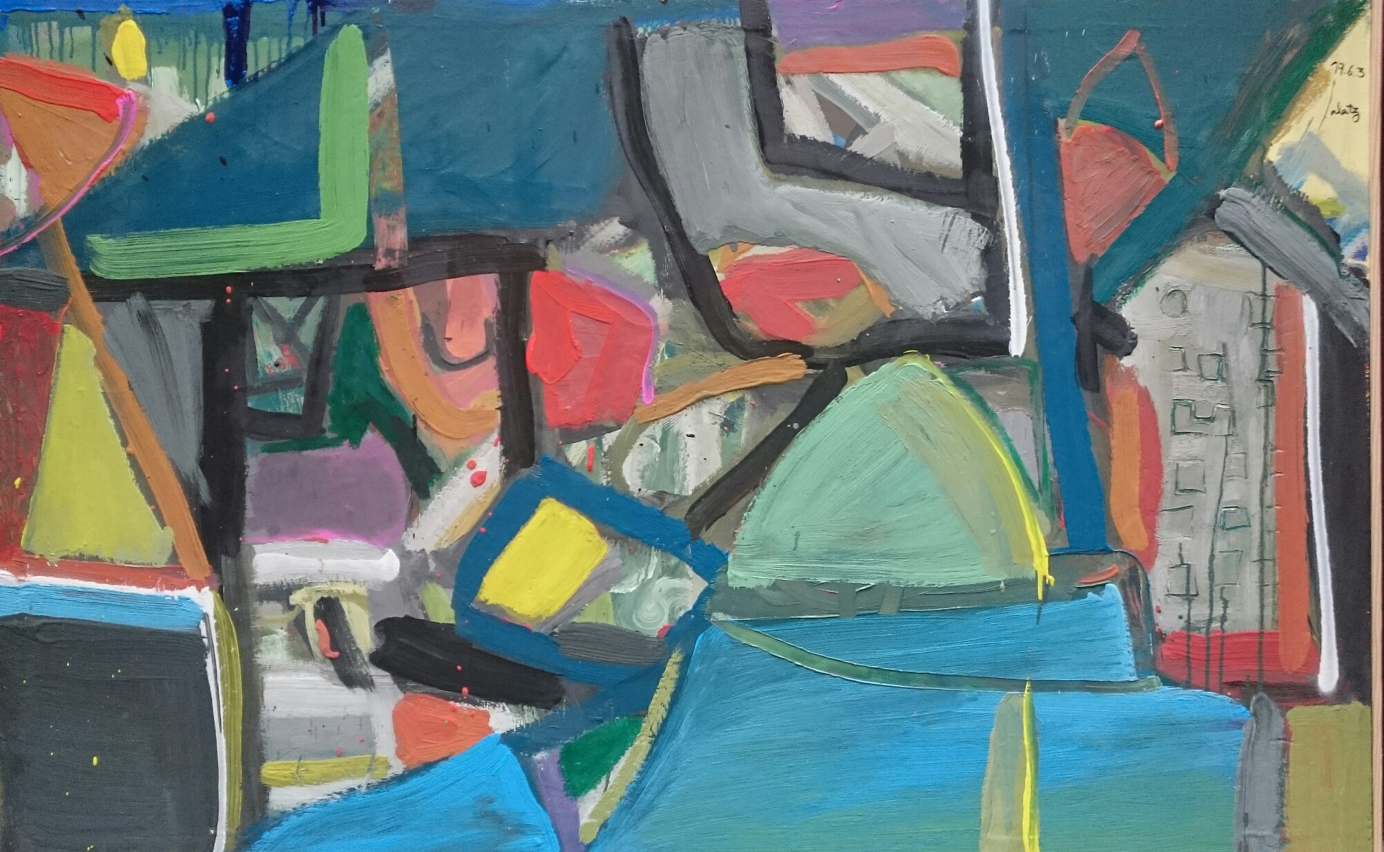 «ZIUTATEAZ. 17-6-3». KREMLIN ARETOAN egindako margolan inprobisatua THE MAKAGROOVIES taldearekin. Bernardo Atxagak idatzitako liburuaren izenburua. Cuadro improvisado realizado en el KREMLIN de Bilbo. 164 X 103 cms. Acrilico, témpera y spray sobre lienzo. Titulo cogido del libro escrito por Bernardo Atxaga.
