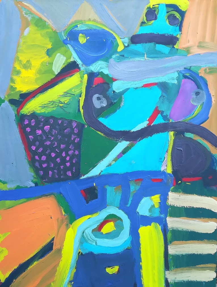 Resultado del primer ensayo de IMPRO HYBRIDA, combinación de música de Rubens Marens y pintura de Alatz López.