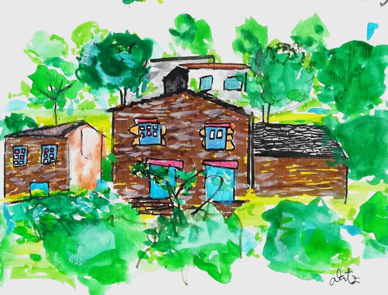 «FOZ DE ÉGUA, ARGANIL». acuarelas y rotulador sobre papel. 14×21 cms.