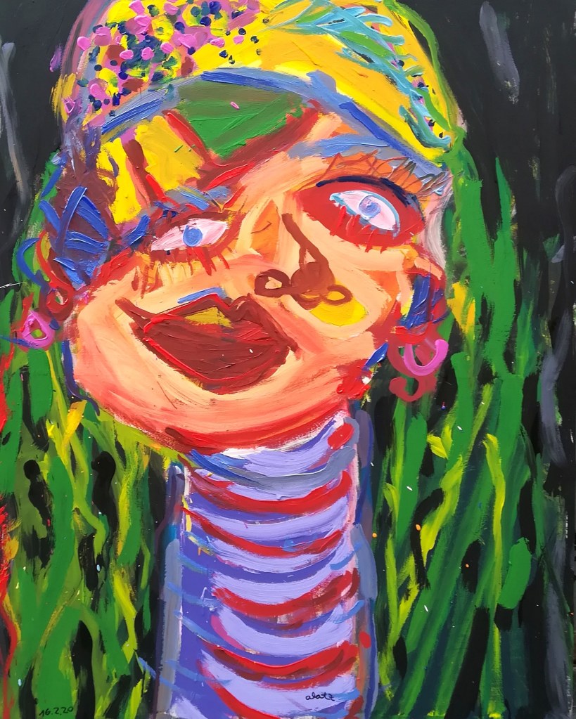 «ZINGARA MIRANDO A LA LUNA». acrílicos sobre lienzo. 134x 104 cms.