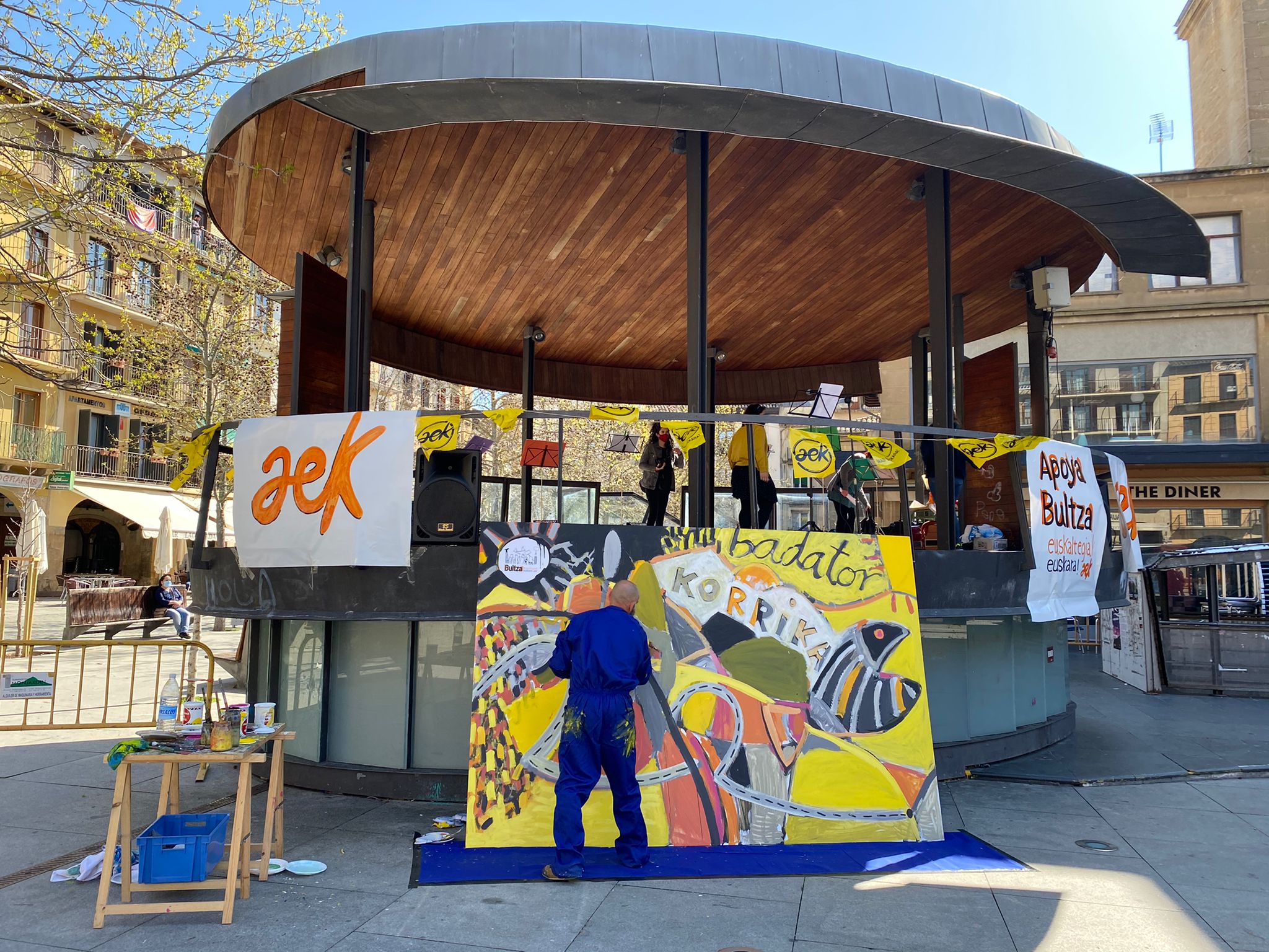 «BADATOR 22. KORRIKA». BULTZAren margolana. Lizarrako Foruen Plazan zuzenean egindakoa. 3×2 metrokoa.