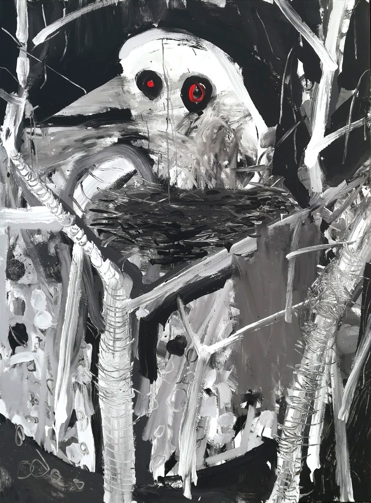 «TXORIA HASERRETUTA – PÁJARO ENFADADO» . acrílicos sobre lienzo. 120×160 cms.