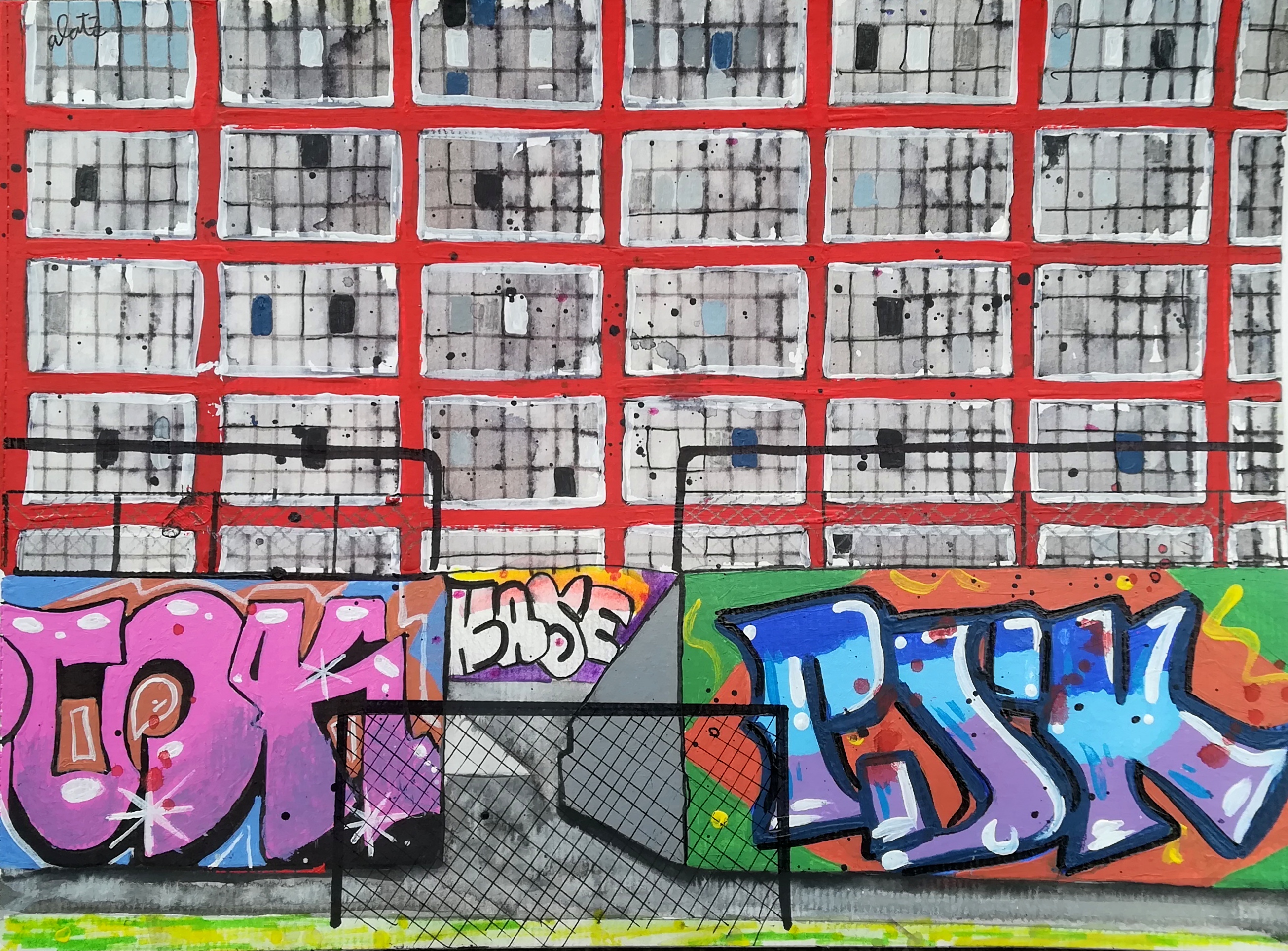 «DEUSTU». acuarelas, rotuladores y acrílicos sobre papel. 21×29 cms.