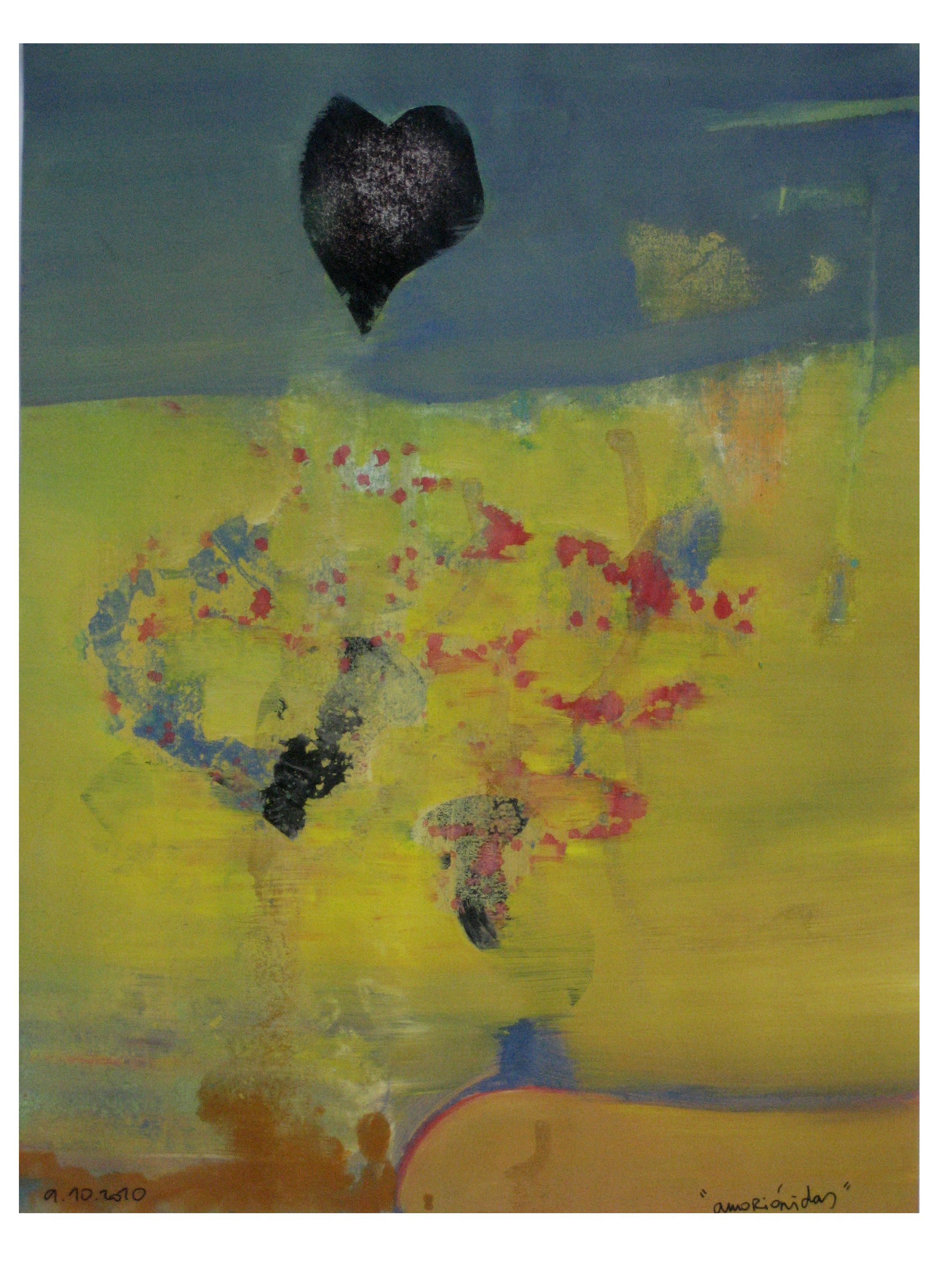 1. pequeño formato pero una gran obra. manchas colores y formas en las que te hacen pensar y ver cosas que me hacen sentir bien . me recuerda a zumeta , un saludo . cesar