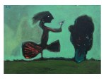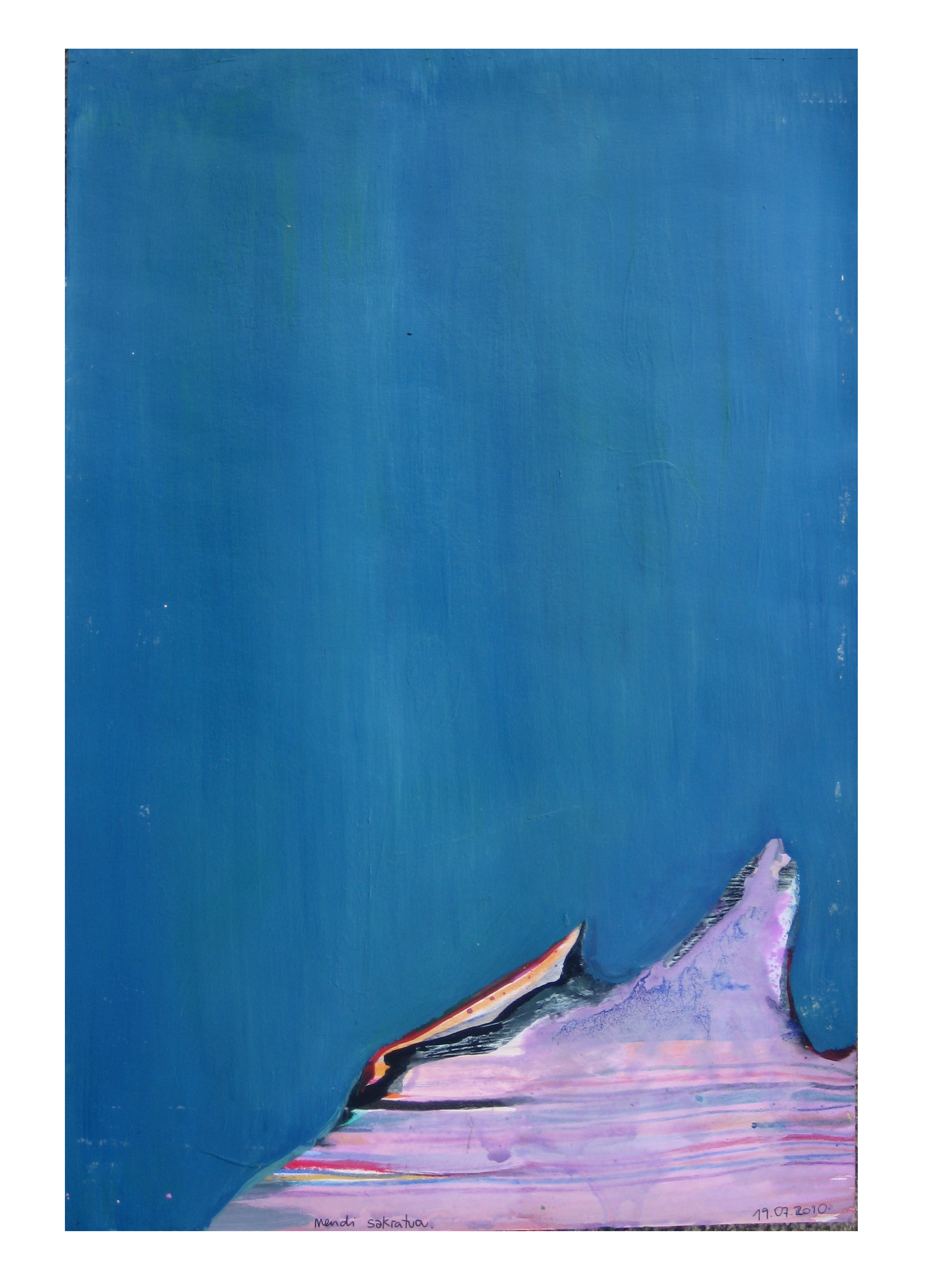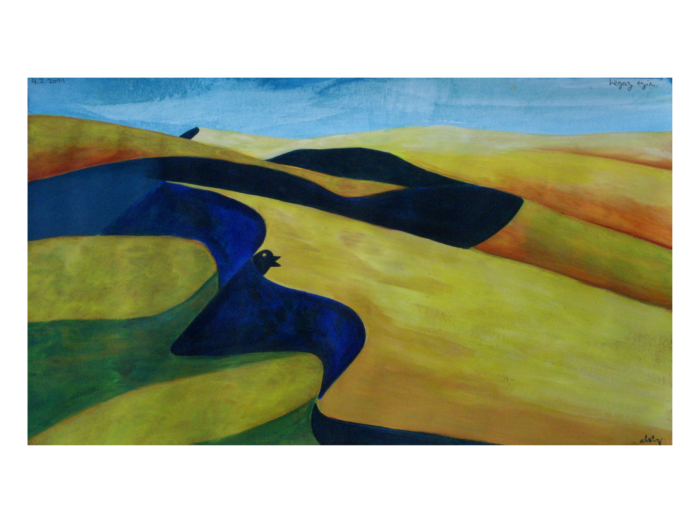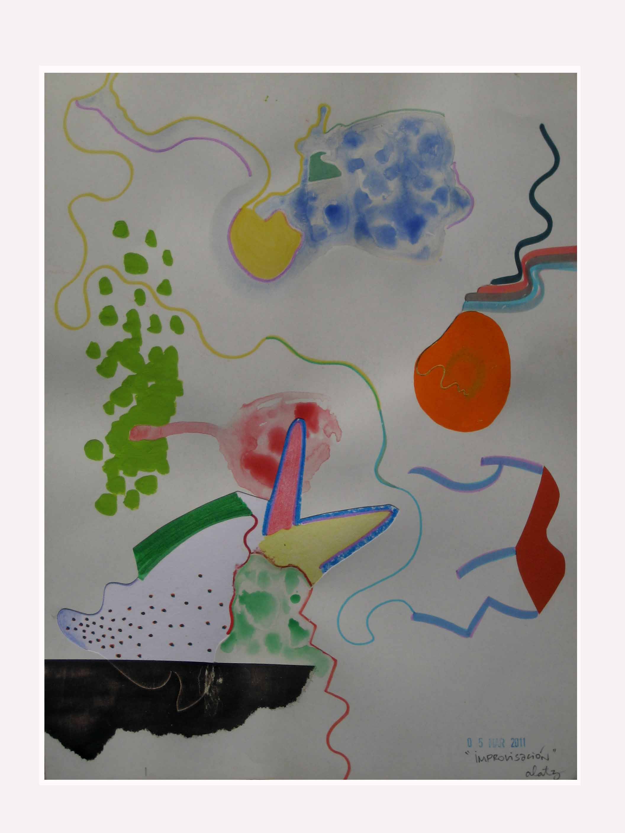 1. …me alegra que nombres a Zumeta…es uno de los pintores que están muy presentes en mi trabajo. Me gusta su libertad; su frescura… y qué decir del color que creo es lo que transmite una energía que cómo bien dices «te hace sentirte bien» e incluso te hace despertar cuando nuestra sensibilidad anda echando la siesta. No me olvido también del arte de los más pequeños, los niños…pienso que son los primeros artistas. Con que libertad y pasión realizan imágenes muy muy locas. Para una niña que coge un rotulador o un pincel, el acto de dejar huella en el soporte es verdaderamente mágico y eso lo transmiten…hasta que crecemos y dejamos de volar…quizas en esas estemos los artistas hoy en día…en no querer dejar de volar.