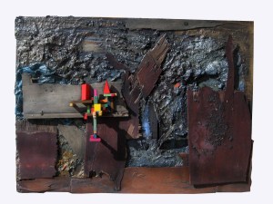 5 comentarios en “«refugio (orden y kaos)». madera, trapo, cemento, plástico, arcilla y óleo sobre madera. 95 X 72 X 15 cms.